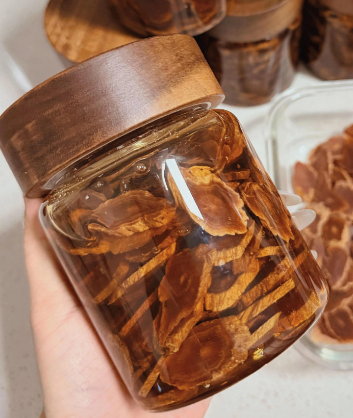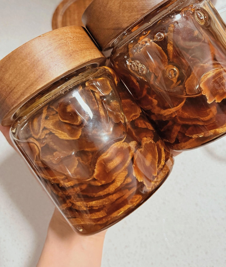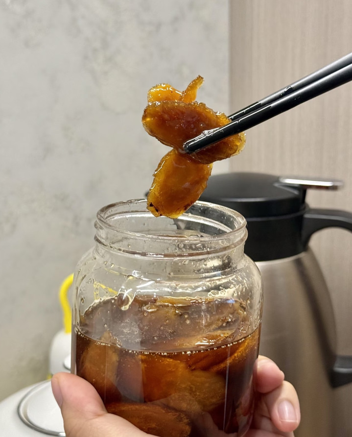 每天清早,取2-3片泡在温热水里(水温别太高,会破损蜂蜜养分),看着琥珀色的汁液徐徐晕开,趁热喝下,一股暖流直达丹田。这是最粗浅的时期。