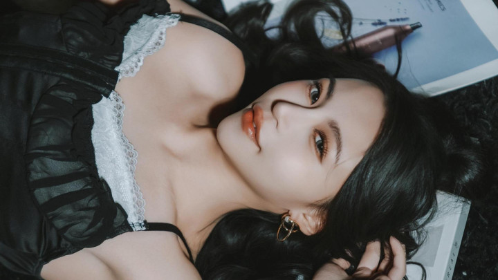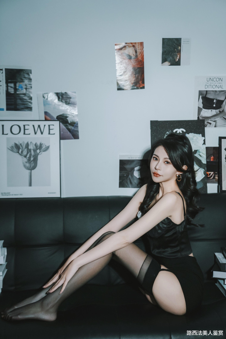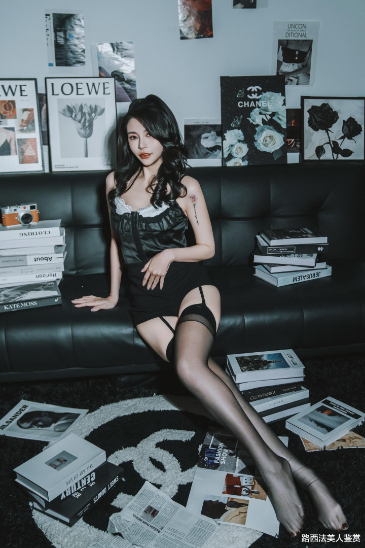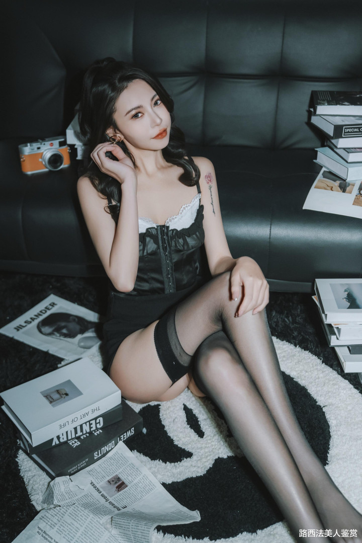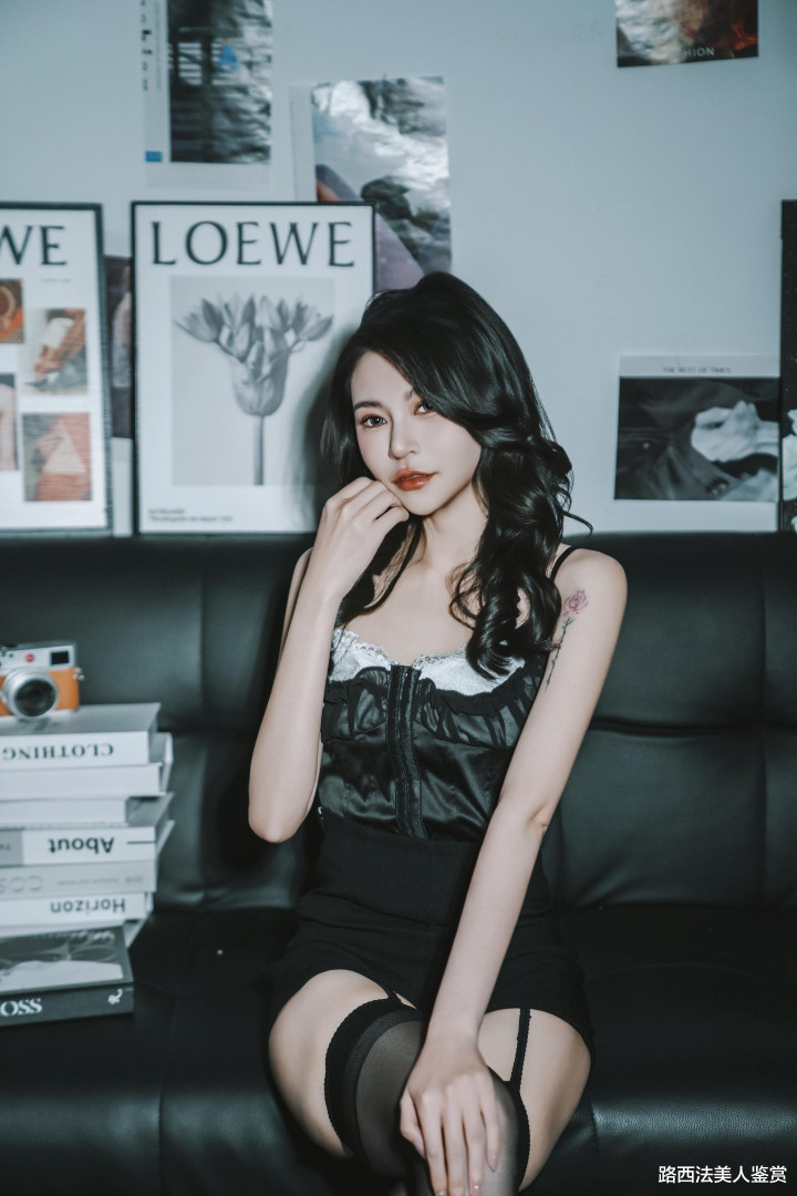 前卫杂志间的慵懒午后,a8体育app最新版玄色蕾丝与鬈发好意思东说念主演绎复旧风情