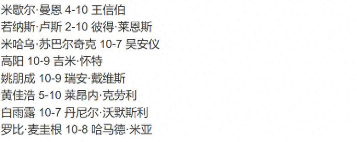 全场比赛高阳打出两杆破百(127、107)和三杆50+(54、92、58),吉米·怀特打出五杆50+(72、52、60、55、54),2东说念主景况皆很可以,怀特值得尊敬。 姚鹏成10-9瑞安·戴维斯 姚鹏成几乎际遇大逆转,第一阶姚一又成打出三杆50+(67、60、66),瑞安·戴维斯只是打出一杆52分,9局打完,以7-2当先瑞安·戴维斯,上风岷县,第二阶段风浪突变,姚鹏成失实连连,两边战至决胜局,最终姚一又成以10-9的比分慑服瑞安·戴维斯,晋级112强。