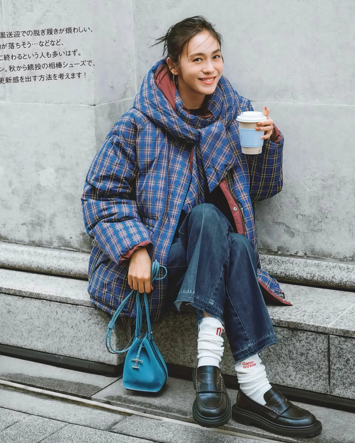 ★ 乐福鞋配牛仔裤加一对堆堆袜,春天不冷还多一层细节 春天穿乐福鞋搭牛仔裤的时辰,你在脚踝处加一对堆堆袜,成果比光腿好好多,裤脚和鞋口之间如若什么齐不加,那段光着的脚踝会让下半身显得单调。 堆堆袜的褶皱堆在脚踝位置,给裤脚到鞋口之间加多了新的色块和肌理,从裤管到袜子到鞋面,下半身的档次丰富了一层,何况早春温度不悠闲的时辰,这双袜子还能帮你护住脚踝不受凉。