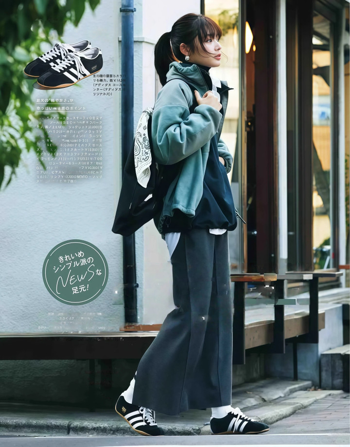 <二> 三种“薄底鞋”怎样挑不踩雷?鞋型、材质、热诚帮你理澄澈 tips① “德训鞋”的选款重点: ★ 鞋面选“短长棕灰”等基础配色,彩色拼接款搭配局限太大 德训鞋市面上最多的即是那种三四种热诚拼在一说念的款,红绿撞色、蓝橙拼接,看单品图以为顺眼,但你买回顾搭衣服就会发现它跟衣柜里大部分单品齐凑不到一说念去,鞋上热诚太杂,你上身的衣服必须跟鞋上某一块热诚呼应才不显乱,这就把搭配空间压缩到了很窄的鸿沟里。 我提出环球选基础配色,短长、棕灰、全白、奶白这些色系,穿搭余步宽得多,你搭牛仔裤、卡其色阔腿裤、灰色西裤齐没问题,鞋子热诚不刺眼,和衣柜里什么热诚的衣服放在一说念齐不突兀。 {jz:field.toptypename/}