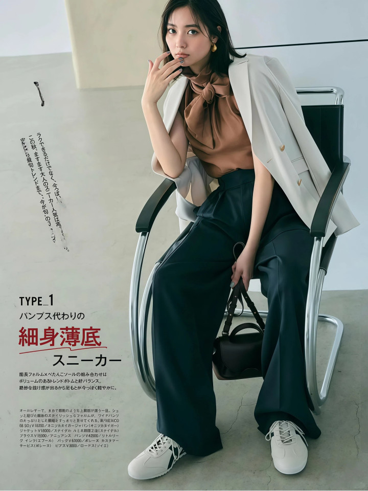<三> “薄底鞋”配什么最佳看?这几套公式存起来平直穿 Point①. “薄底鞋”配裤装 ★ 德训鞋和裤子选同色系,从裤脚到鞋面一气呵成显腿长 德训鞋搭裤子最聪惠的作念法,是把裤子和鞋子的热诚规定在合并个色系里,深棕色裤子配棕色德训鞋、玄色裤子配短长色德训鞋,热诚结伙之后裤管到鞋面之间莫得色差断开,下半身呈现一整条不阻隔的纵向色块,你的腿看着会比内容长一截。