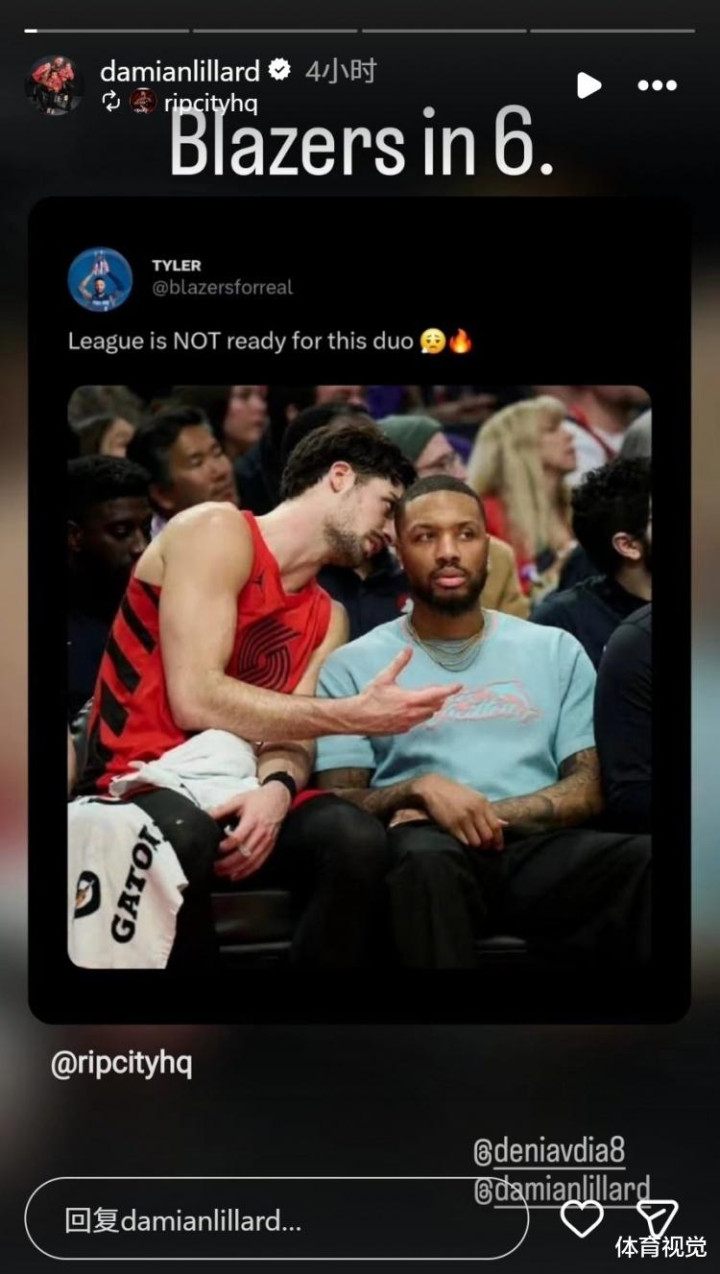 尽管球队保握洞开格调,但利拉德的复原历程仍面对不小差距。利拉德现在尚未启动进行复原比赛气象的磨砺,全场挣扎磨砺也未提上日程。值得一提的是,利拉德近日更新应答媒体,转发了球迷晒出的动态,实质说起“设备者6场拿下(马刺),定约还未准备好管待这对组合(阿夫迪亚+利拉德)”,似乎展现出我方的弘愿。
