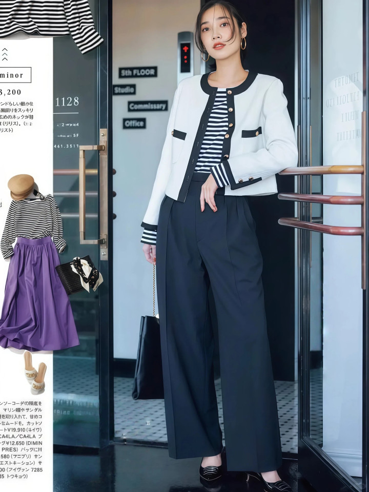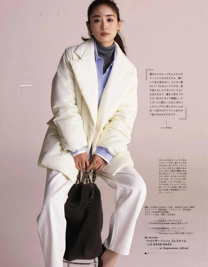 【第三章】早春穿“白色外衣”这样搭,好意思出新高度 Point① 独处白最显着,用材质各别,打造档次感 独处白色不是把白色衣裳往身上堆就完事了,如果你从外衣到内搭到裤子全用吞并种面料、吞并种白,穿出来是扁平的、单调的,东说念主在衣裳里变成了一个平面白色色块。 你需要在不同单品之间制造面料的各别,外衣选挺括的毛呢或棉服,内搭换成柔嫩的诚实或带光泽的缎面,裤子用有垂坠度的西裤面料,三件衣裳自然面容妥洽,但名义的光泽度、肌理和软硬度各不疏浚。